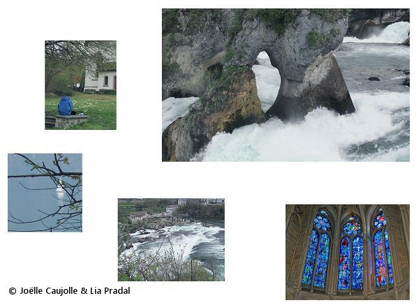À Laufen, la puissance des chutes du Rhin agit comme une force brute sur la perception. Le fracas de l’eau, sa répétition inlassable, semblent éveiller des images profondes. L’écriture se fait plus spontanée, presque automatique, comme portée par le mouvement même des éléments.