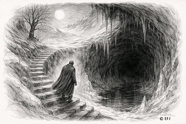 Certaines expériences de maladie confrontent le sujet à une descente vertigineuse dans l’inconscient, vécue comme une glaciation du monde et du sens. Camphora semble incarner cette traversée de la nigredo, telle qu’elle est décrite dans l’œuvre de C. G. Jung.